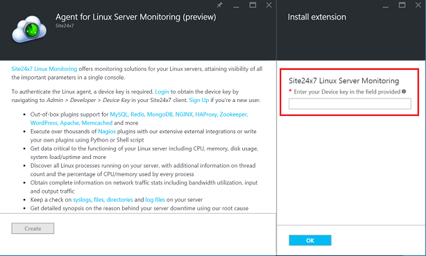 Set-AzureRmVMExtension -ProtectedSettingString '{"site24x7LicenseKey":"enter your licensekey"}' -Publisher Site24x7