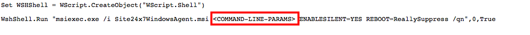 EDITA1= <Your Site24x7 Device Key> - 在Site24x7WindowsAgent.msi中包含网络共享的路径。