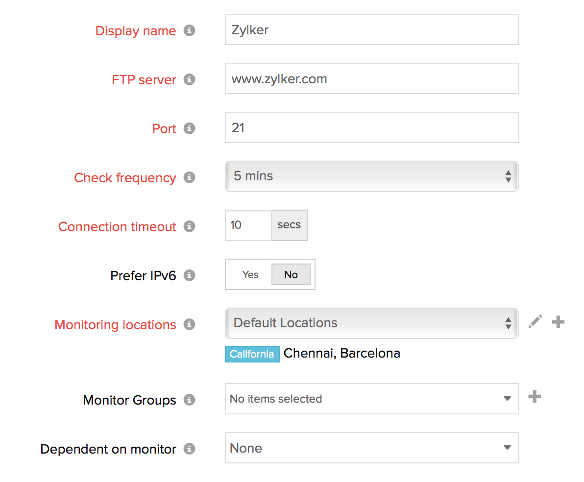 - 首选 IPv6:如果您想通过启用 IPv6 的位置连接到您的 FTP 服务器,只需在创建或编辑监控表单时将移至“是”。