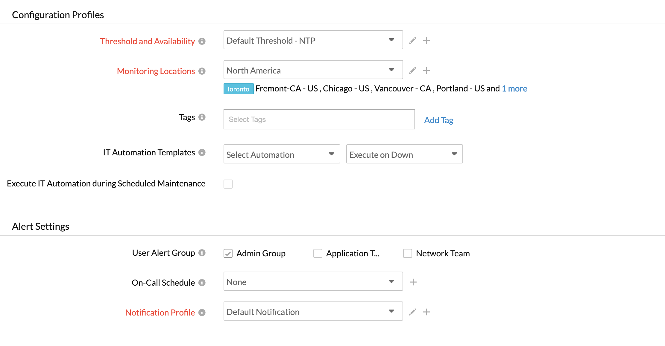 - 监视器组:您可以通过从下拉列表中选择相关监视器组将监视器与多个监视器组关联。这允许对监视器进行逻辑分组。