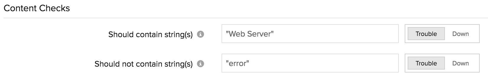 - 应包含字符串:当监控服务器未找到指定的关键字时收到告警。在复选框中提及关键字并使用滑块按钮触发所需的告警。