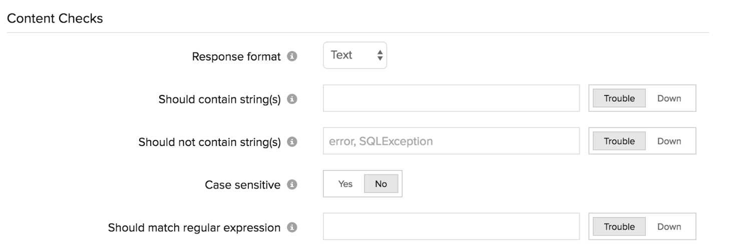 - 应包含字符串:当网站中不存在指定的关键字时收到告警。在复选框中提及关键字并使用滑块按钮触发所需类型的告警。