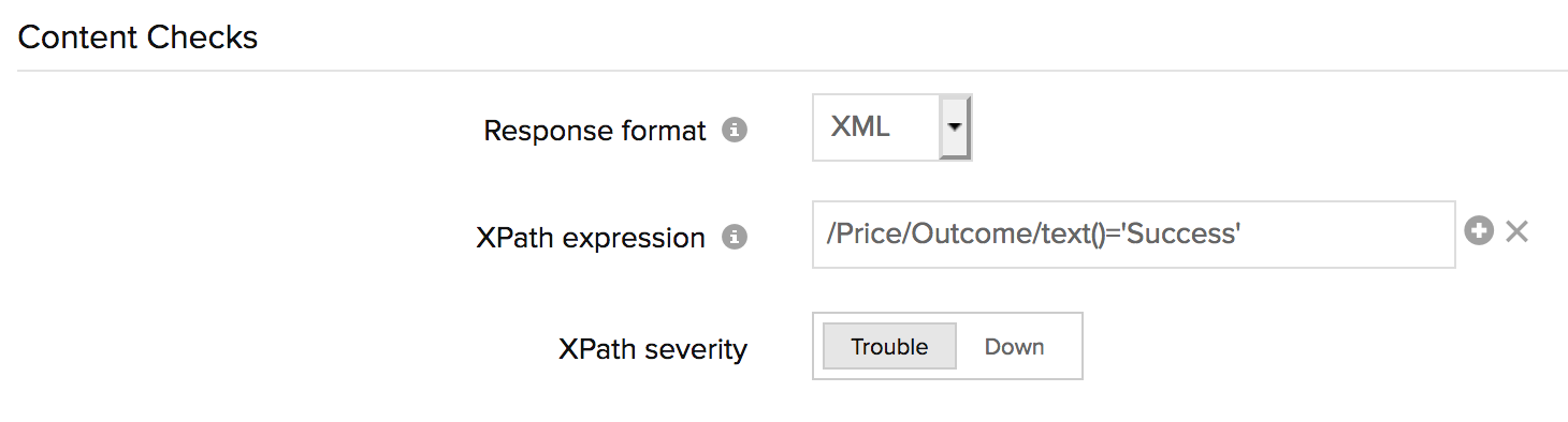 - XPath Severity:将 Alert Severity 指定为“停机或故障的”以决定指定 XPath 表达式断言由于不匹配而失败时的状态。
