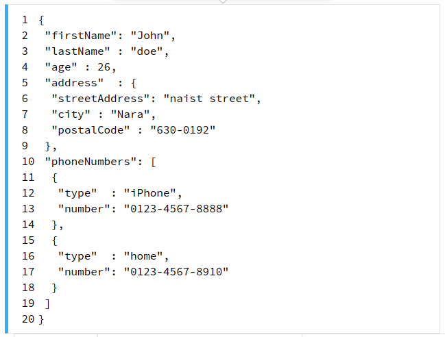 $.phoneNumbers[1] 从“phoneNumbers”数组中选择第二个值。 如果 phoneNumber 属性有 2 个或更多子实体,则状态为 UP。 $.phoneNumbers[?(@.number)] 如果其中包含“number”属性,请选择“phoneNumbers”属性。 如果 phoneNumber 属性至少包含一个具有 number 属性的子项,则状态将为 Up。 $.phoneNumbers[?(@.type ==\"iPhone\")] 选择“phoneNumbers”属性,“类型”是 iPhone。 如果 phoneNumber 属性至少包含一个属性类型为 iPhone 的 childr,则状态将为 UP。 $[?(@.age > 20)] 如果“时间”大于 20,则选择 JSON 对象。