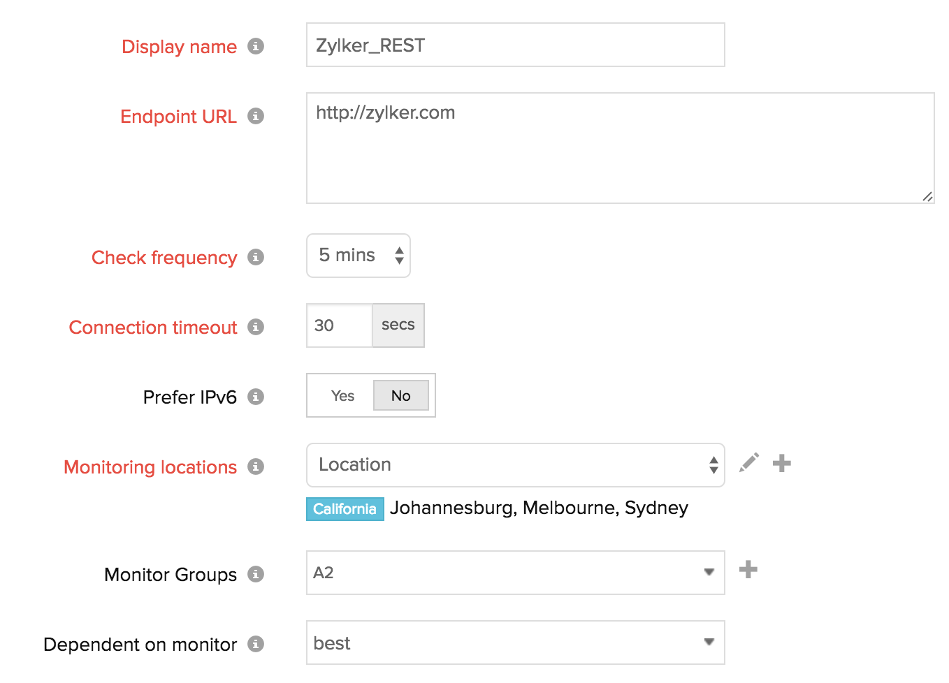 - 首选 IPv6:如果您想通过启用 IPv6 的位置监控端点 URL,只需在创建或编辑监控表单时将选项移至“是”。