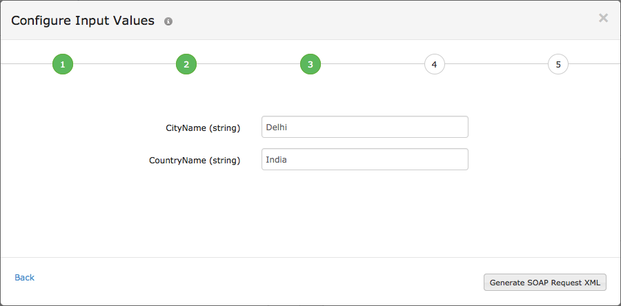 - 配置输入值:针对相应参数添加必要的值,然后单击生成 SOAP 请求 XML。