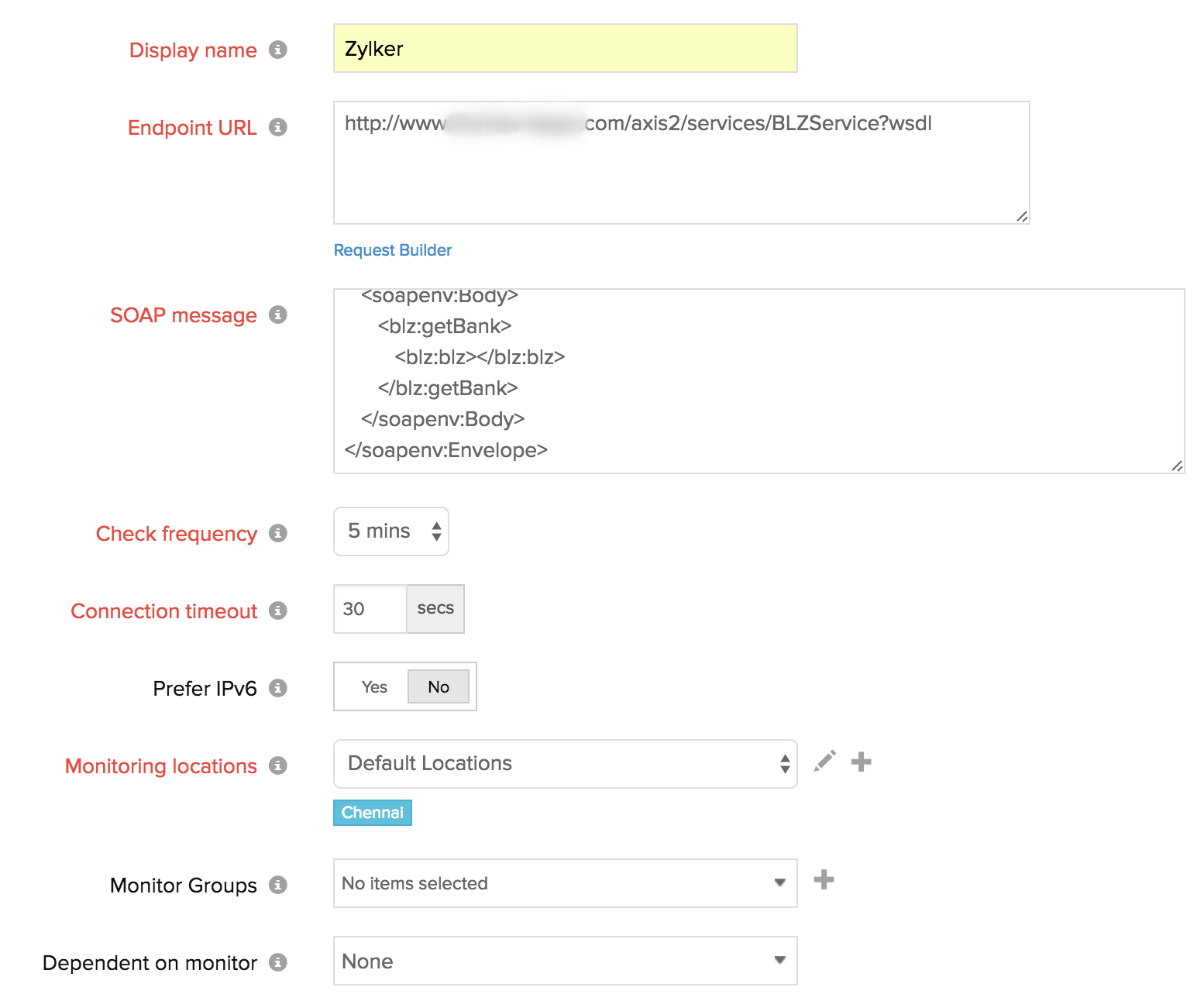 - 首选 IPv6:如果您想通过启用 IPv6 的位置监控您的 SOAP Web 服务,只需在创建或编辑监控表单时将选项移至“是”即可。