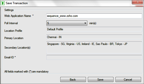 - 在保存事务屏幕中编辑并输入该字段,然后单击保存以将事务提交到您的 Site24x7 帐户。