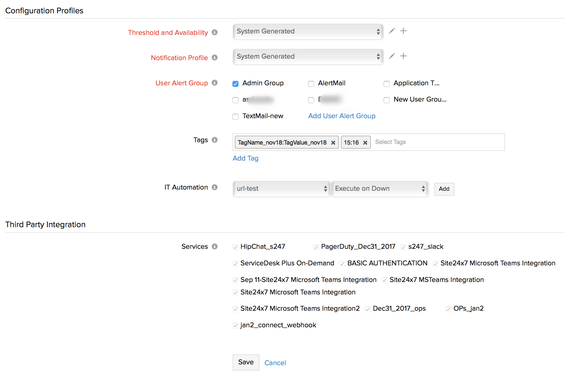 - IT 自动化:选择当网站关闭/故障/启动/任何状态更改/任何属性更改时要执行的自动化。当状态发生变化并提醒选定的用户组时,将执行定义的操作。