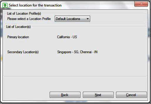 - 从下拉列表中选择位置配置文件以选择您的事务位置。将显示为所选位置配置文件选择的主要和次要位置。了解有关位置配置文件的更多信息。