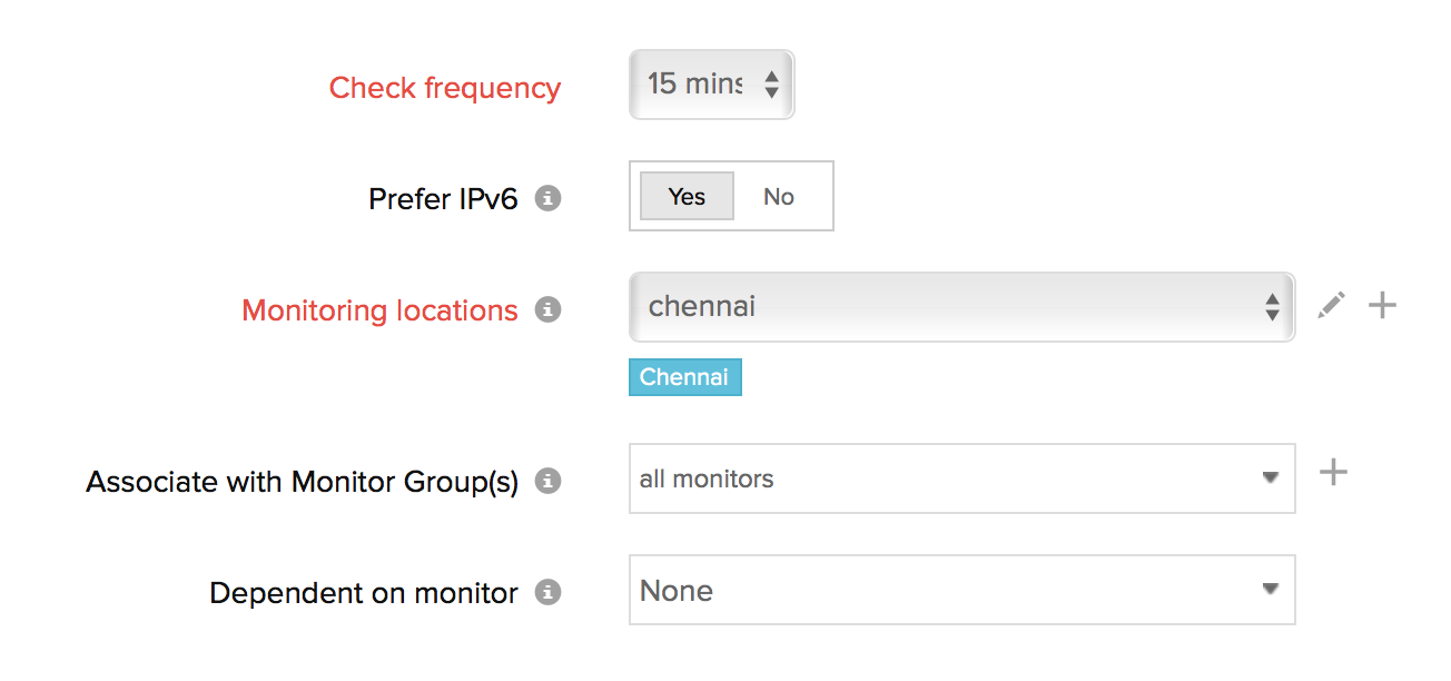 - 默认情况下,在监控表单中启用 IPv6 不会使其兼容监控 IPv4。如果您想监控与 IPv4 和 IPv6 兼容的资源,您必须为此设置两个单独的监控检查。