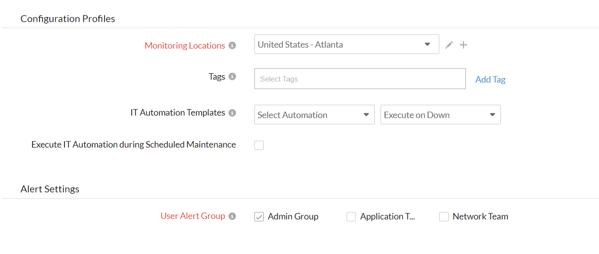 - 用户告警组:选择需要在中断期间发出告警的用户组。要在组中添加多个用户,请参阅 用户组。