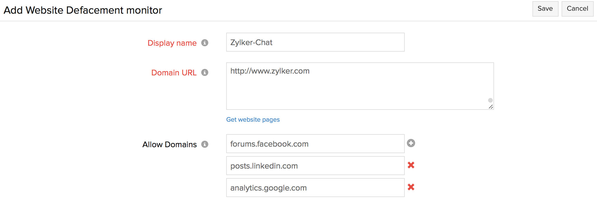 - 如果您希望监控网站域中的多个网页,请访问“获取网站页面链接”> 提供域 URL > 单击获取网站页面。