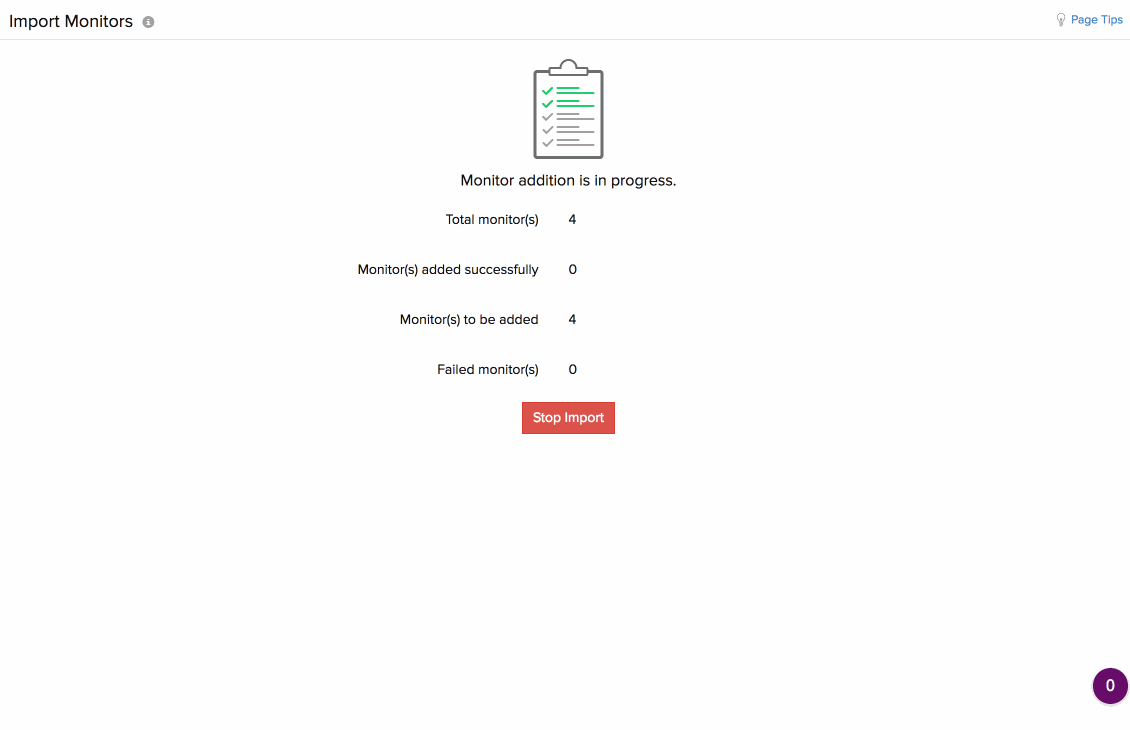您可以单击“显示结果”链接查看任务完成状态以及监视器失败的可能原因。单击显示导入的监视器以查看您已导入的所有监视器。