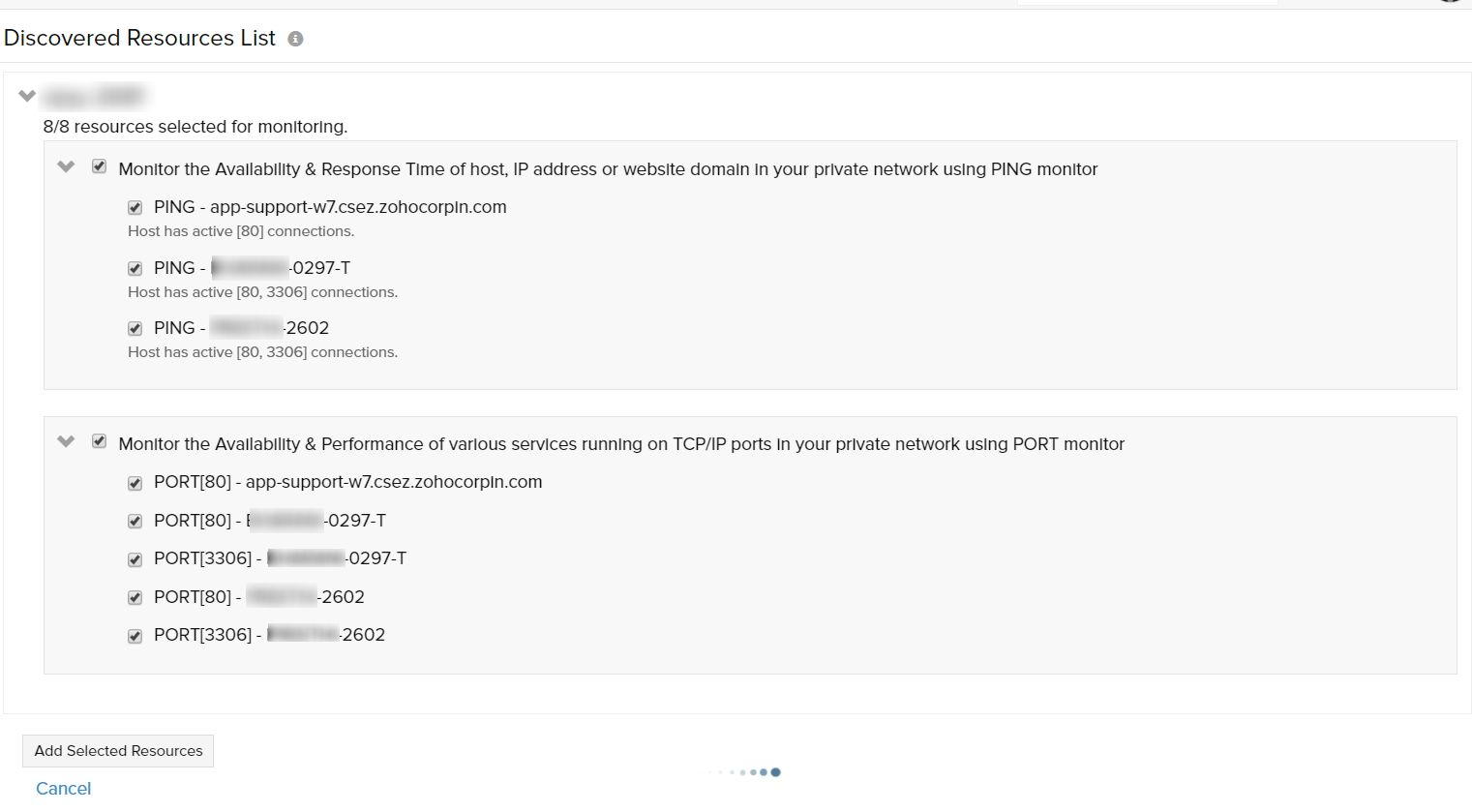 启用自动添加后,将自动添加发现的资源以进行监控。
