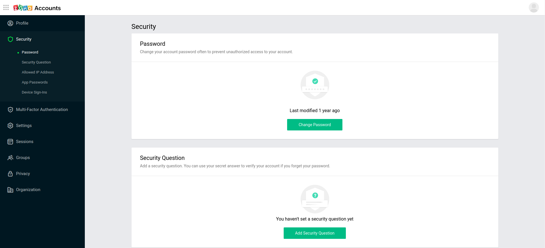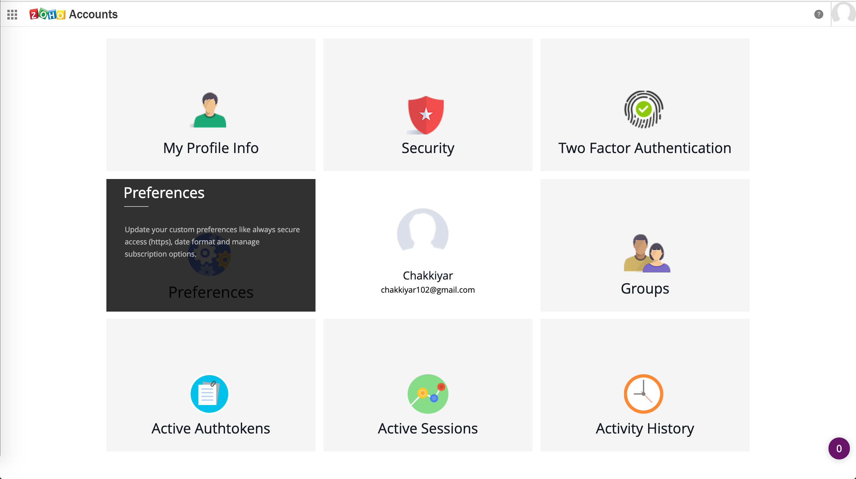 - 更改电子邮件地址:更新您的主要/次要地址的电子邮件首选项。如果您忘记密码,Zoho 账户将向您的电子邮件发送重置说明。
