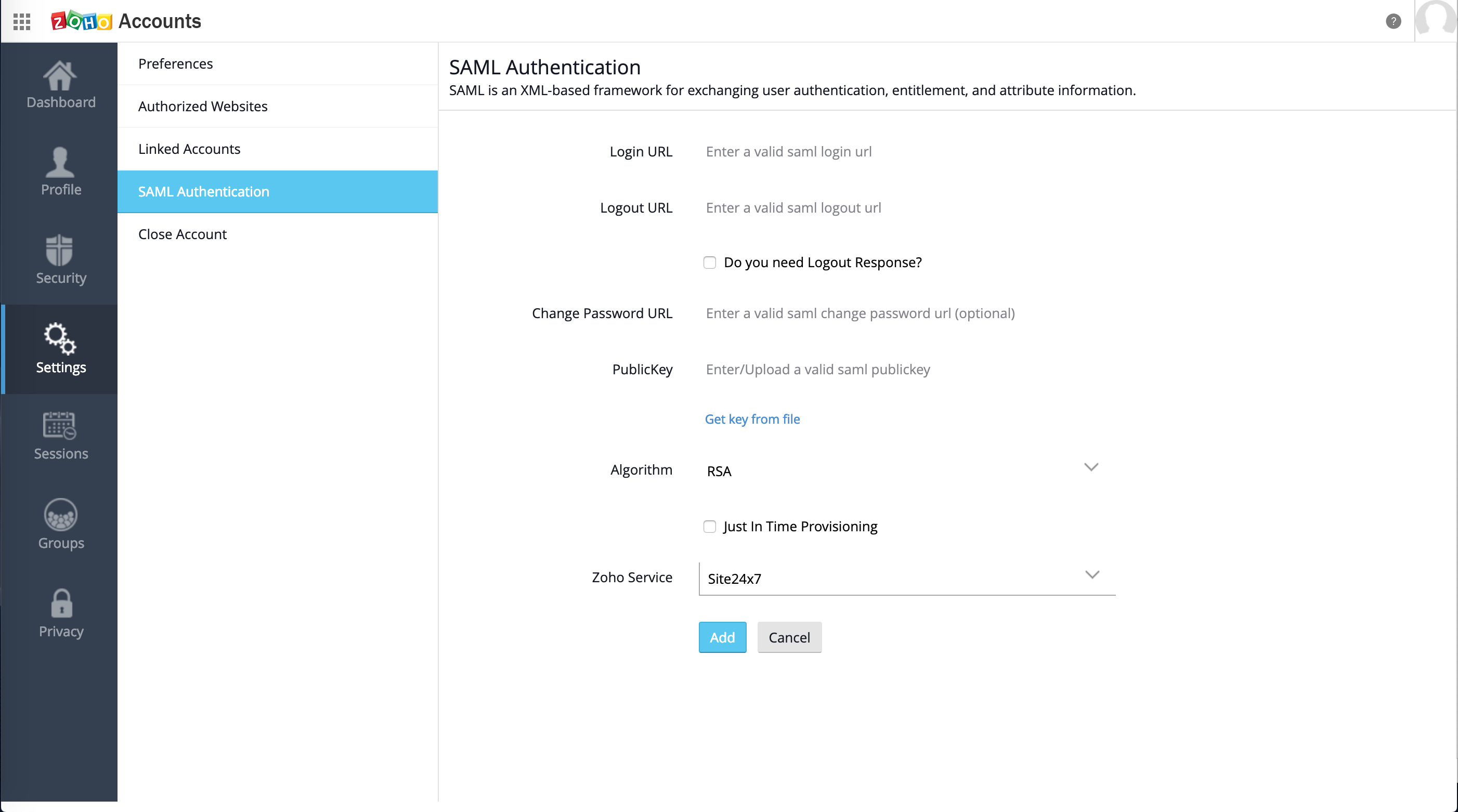 使用基于 SAML 的身份验证为 Site24x7 设置单点登录 (SSO)