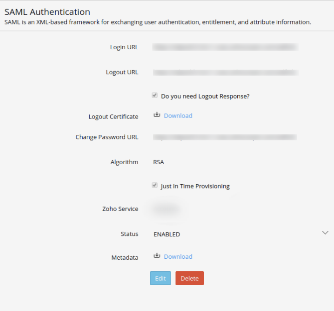 - 注销 URL:用户在注销 Zoho 后被重定向到的 IdP URL。
