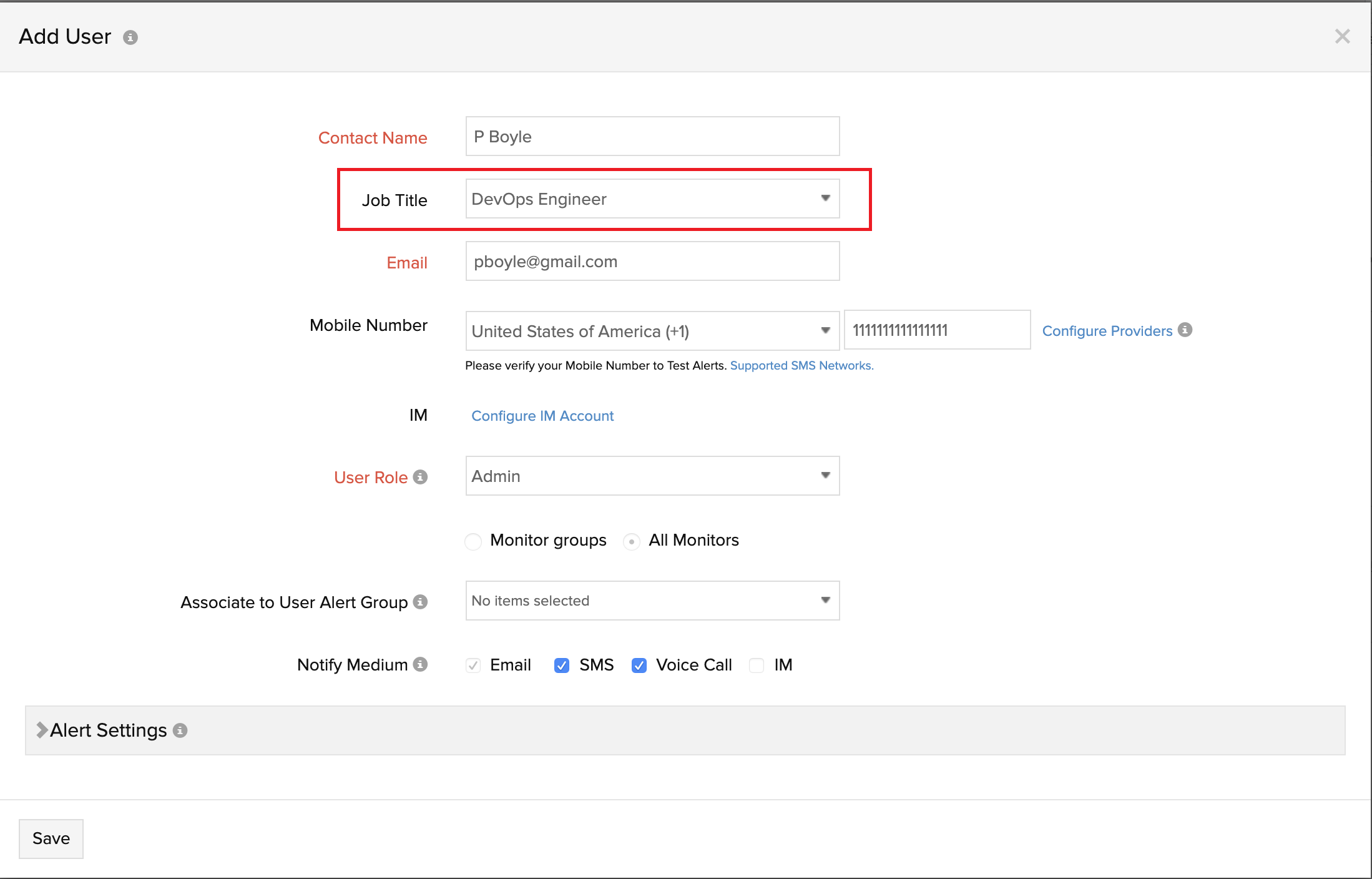 帮助您添加和验证您的电话号码以通过 SMS 接收监视器状态告警。了解如何在 Site24x7 中设置 SMS 告警。