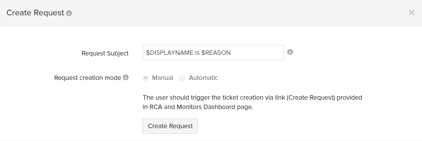 - 请求创建模式:单击手动或自动单选按钮以在您的 SDP On-Demand 门户中调用所需的工单创建模式。