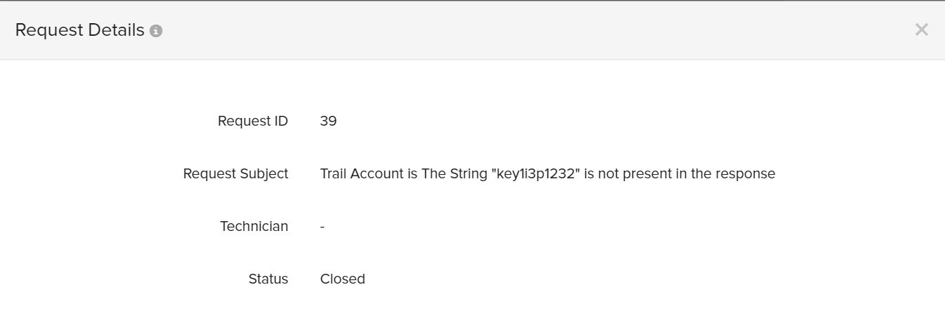 - 发起请求后,屏幕上会弹出一个“请求详细信息”窗口,为您提供详细信息,例如;请求 ID、请求主题、技术人员姓名和请求状态。