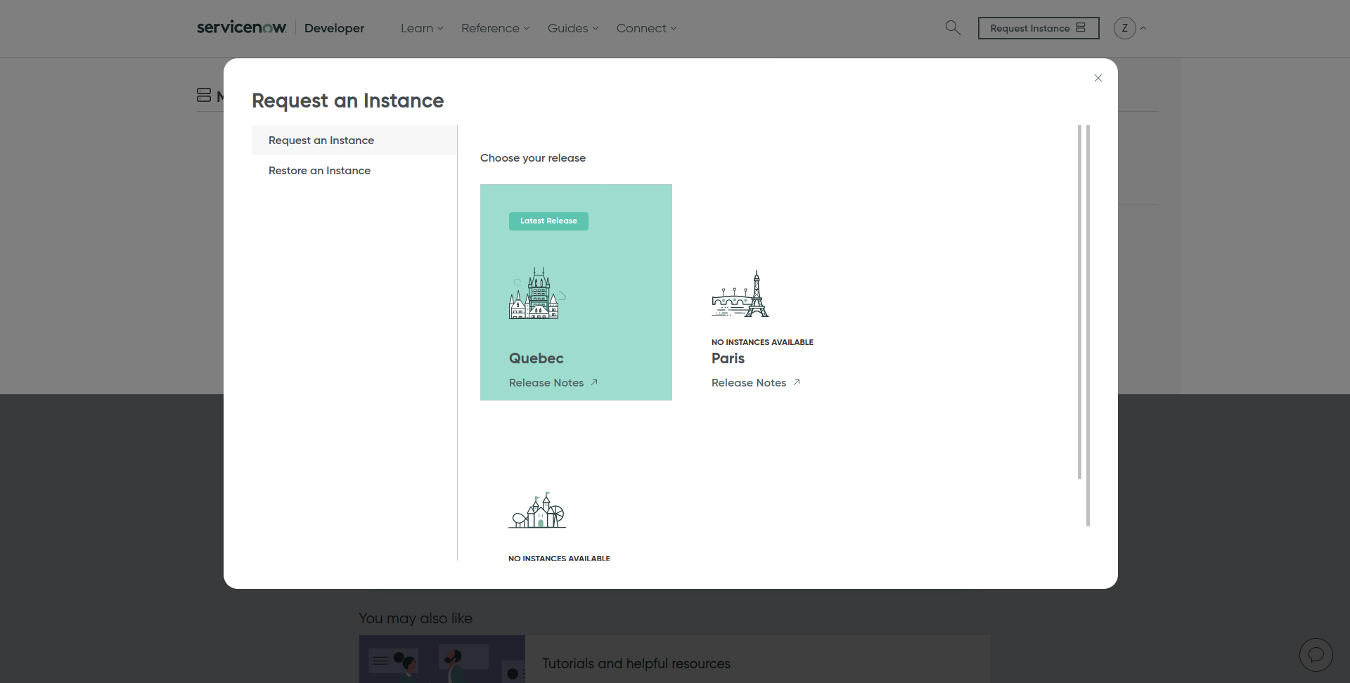 - 在打开的请求一个实例弹出窗口中,选择发布您的首选项,然后单击请求实例。