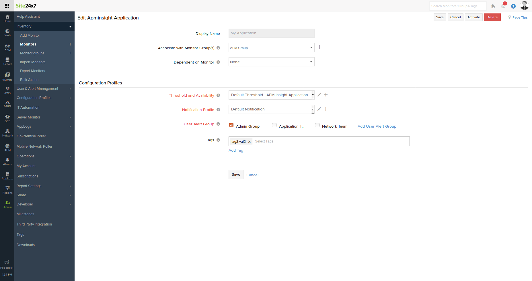 - 将鼠标悬停在应用程序三横杠图标上并选择“编辑告警配置”