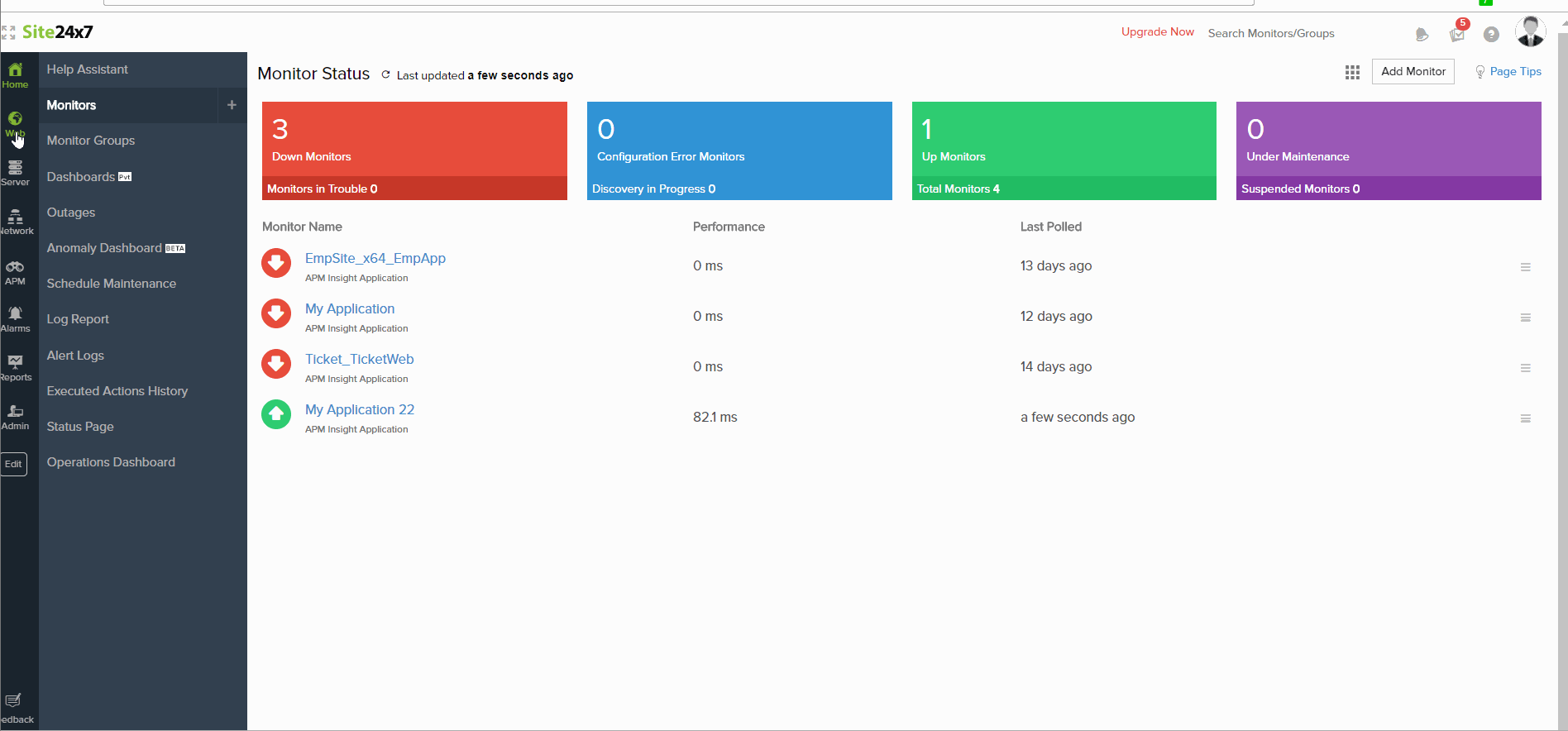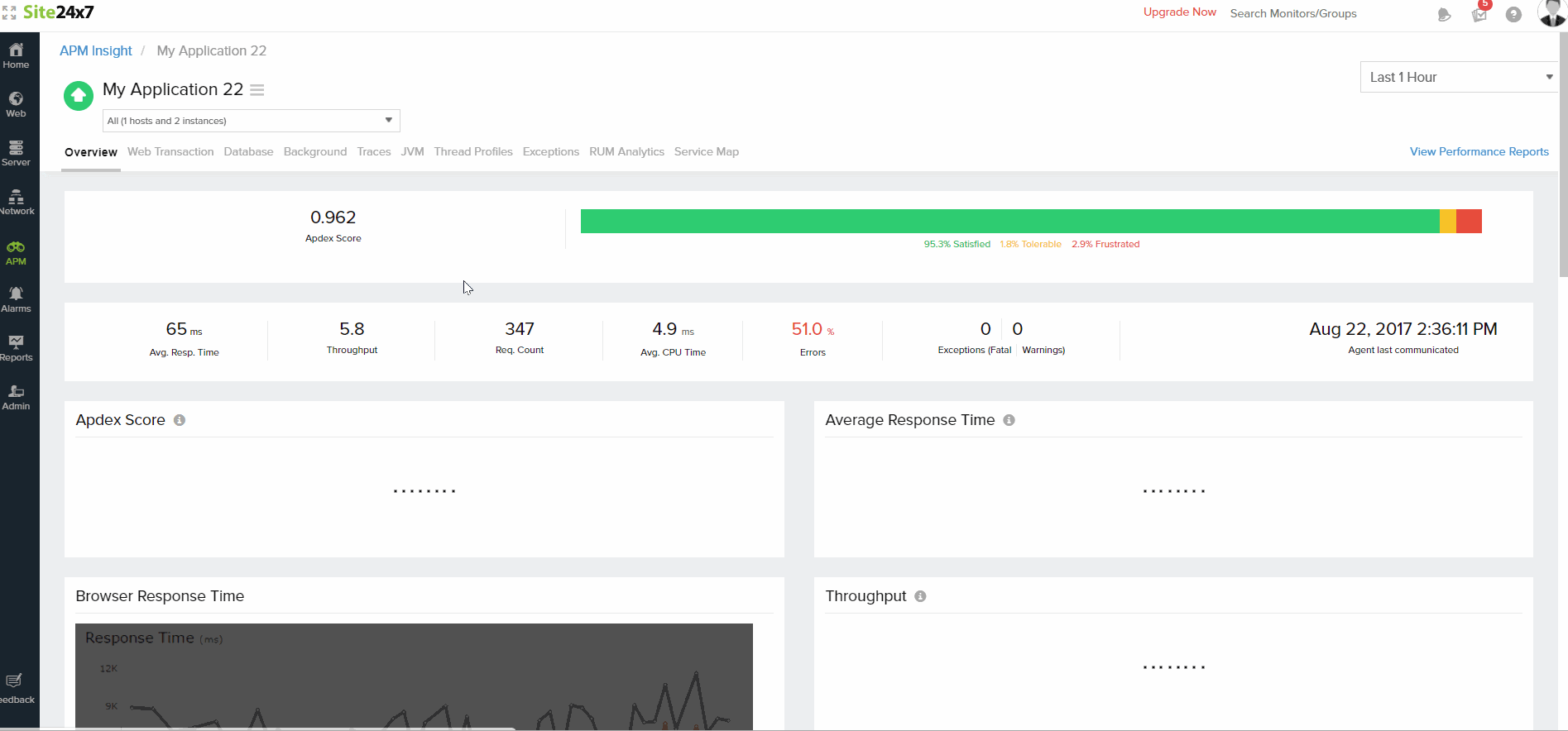 - 登录您的 Site24x7 帐户 > 主页 > APM Insight