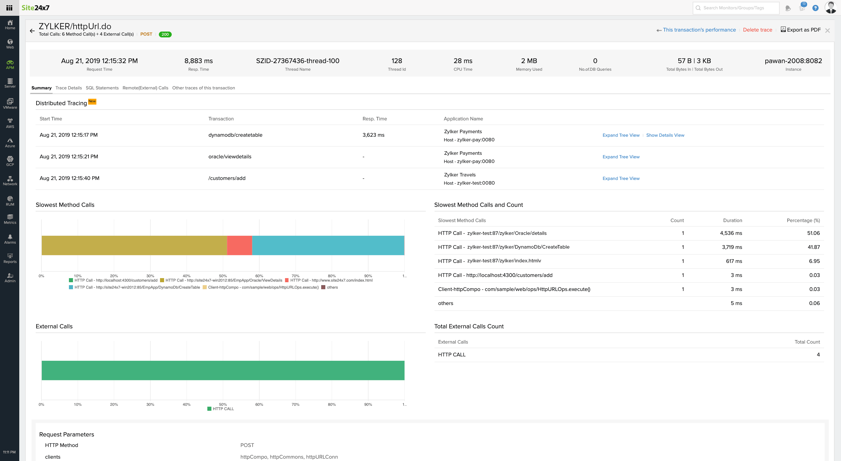 - httpURL.do 是来自应用程序 Zylker 的父事务。