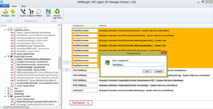 从左窗格中 选择所需的方法/类甚至整个程序集,并将其添加到右窗格以进行监视。选择的方法数量将显示在 底部。