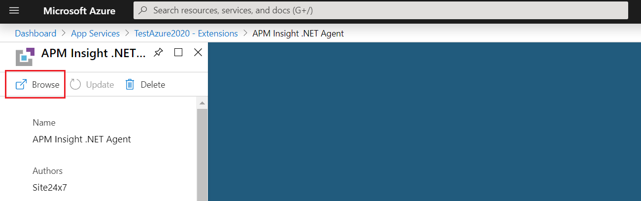- 或者,您可以使用以下 URL https://.scm.azurewebsites.net/site24x7/ 直接浏览扩展程序