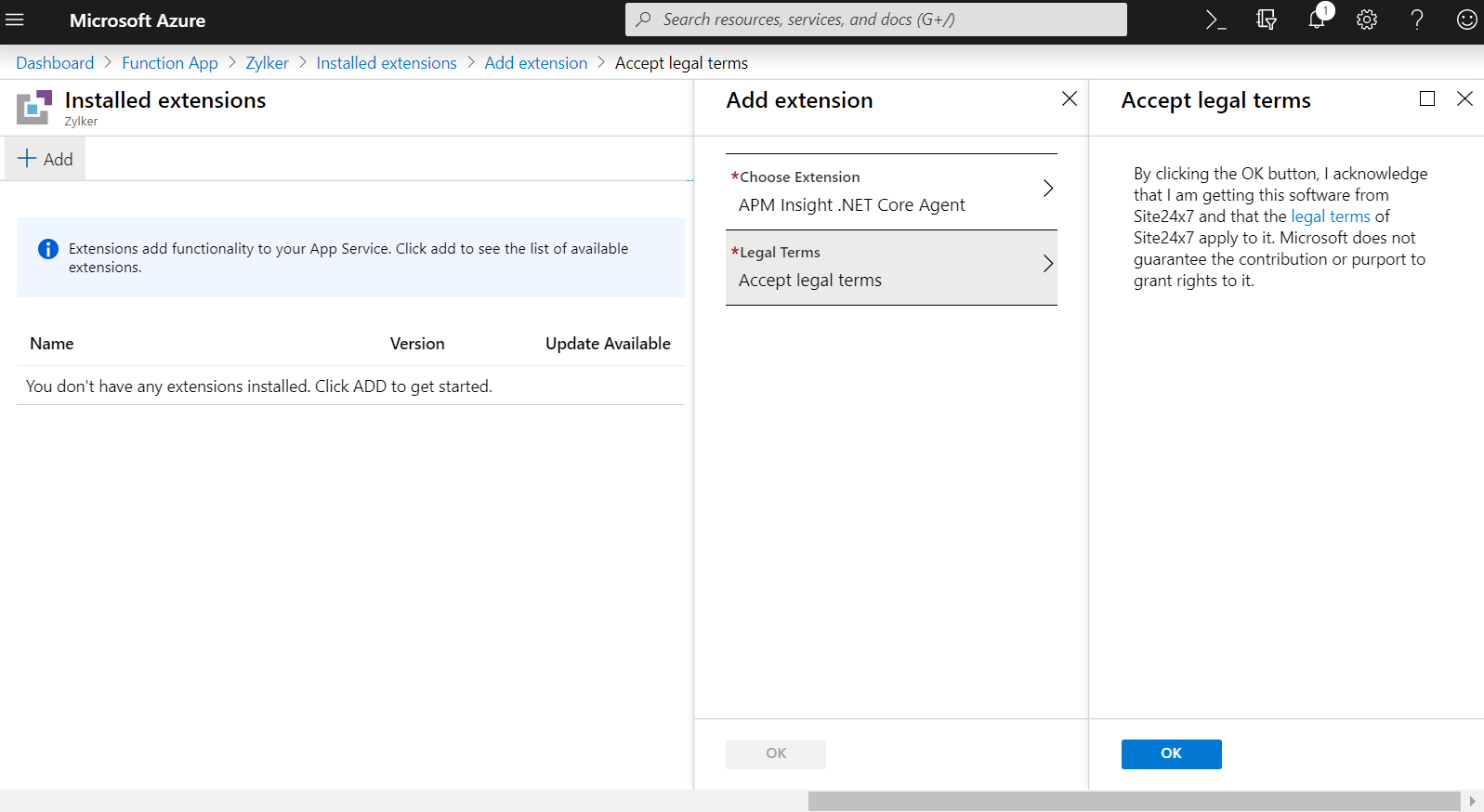 在 Azure Functions 应用中安装 APM Insight .NET Core 扩展