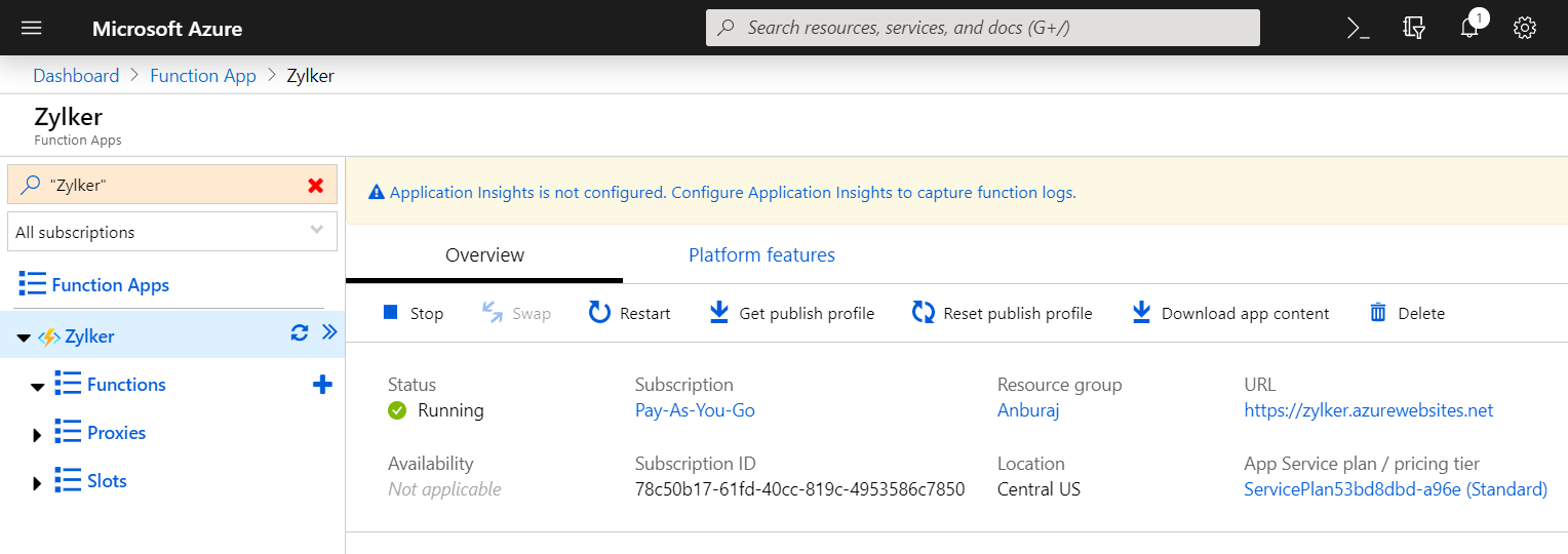 5.代理更新完成后,重新启动 Azure Function 应用程序并使用它继续监控。