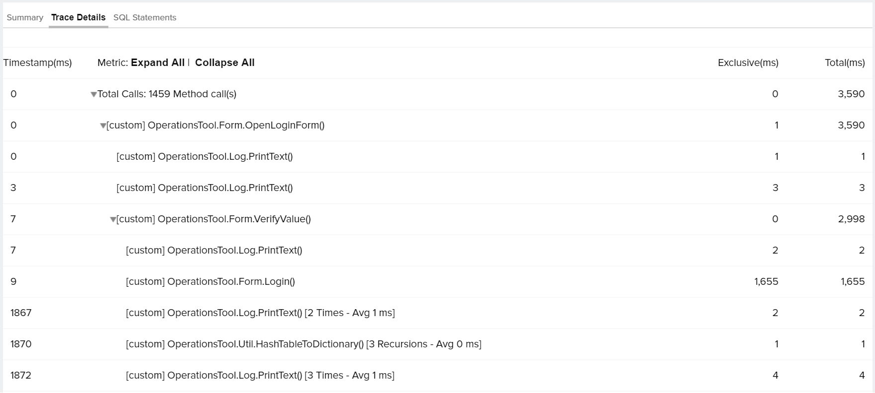 - APM Insight > .NET 应用程序 > Web 事务 > 跟踪 > 最近的跟踪 > 跟踪详细信息。