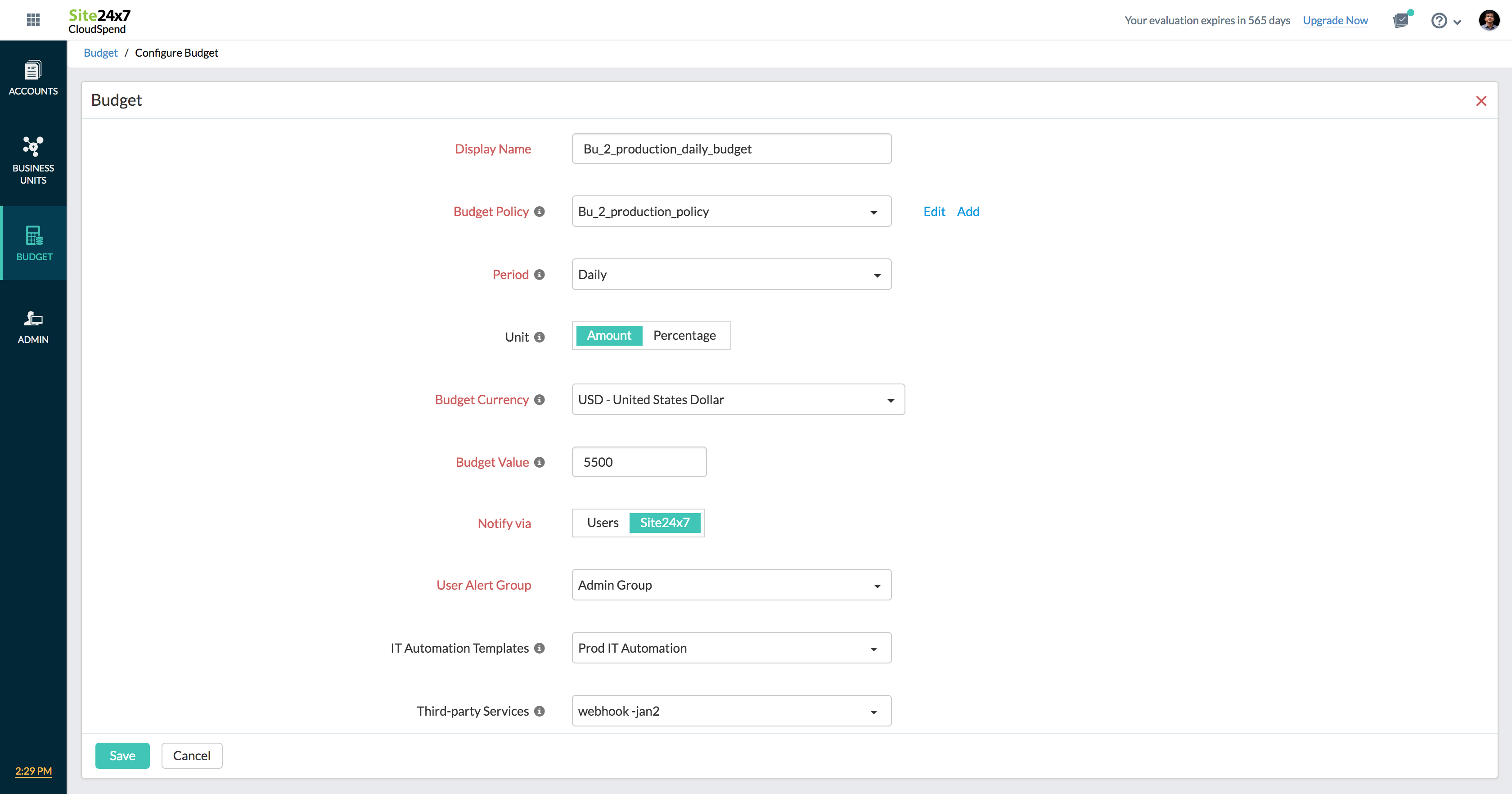 您可以为每个 BU 创建预算以主动管理成本。为 BU 配置的每个预算将每月、每季度、每年、每月迄今或年初至今运行,以通知您任何成本超支。当您创建与预算关联的预算策略时,您可以将其分配给现有的 BU。通过这种方式,每个团队都可以在预算范围内跟踪和管理其云成本。您还可以通过以下方式获取有关超出预算阈值的告警: