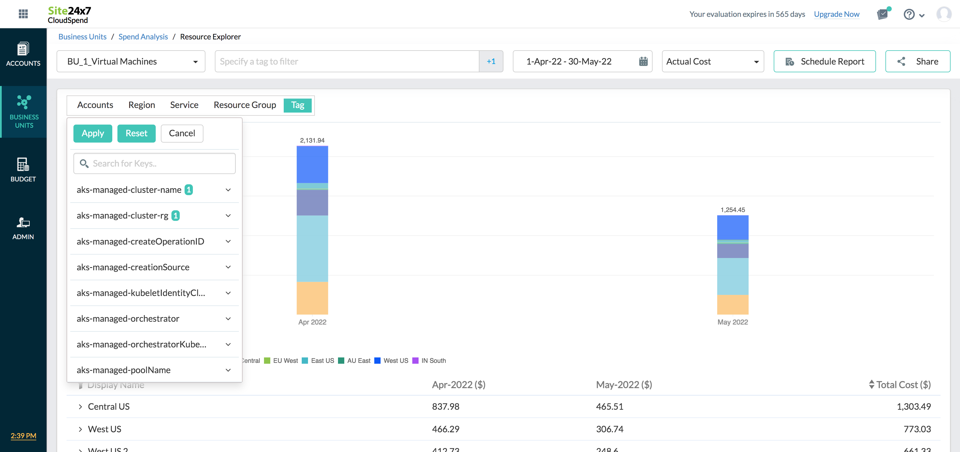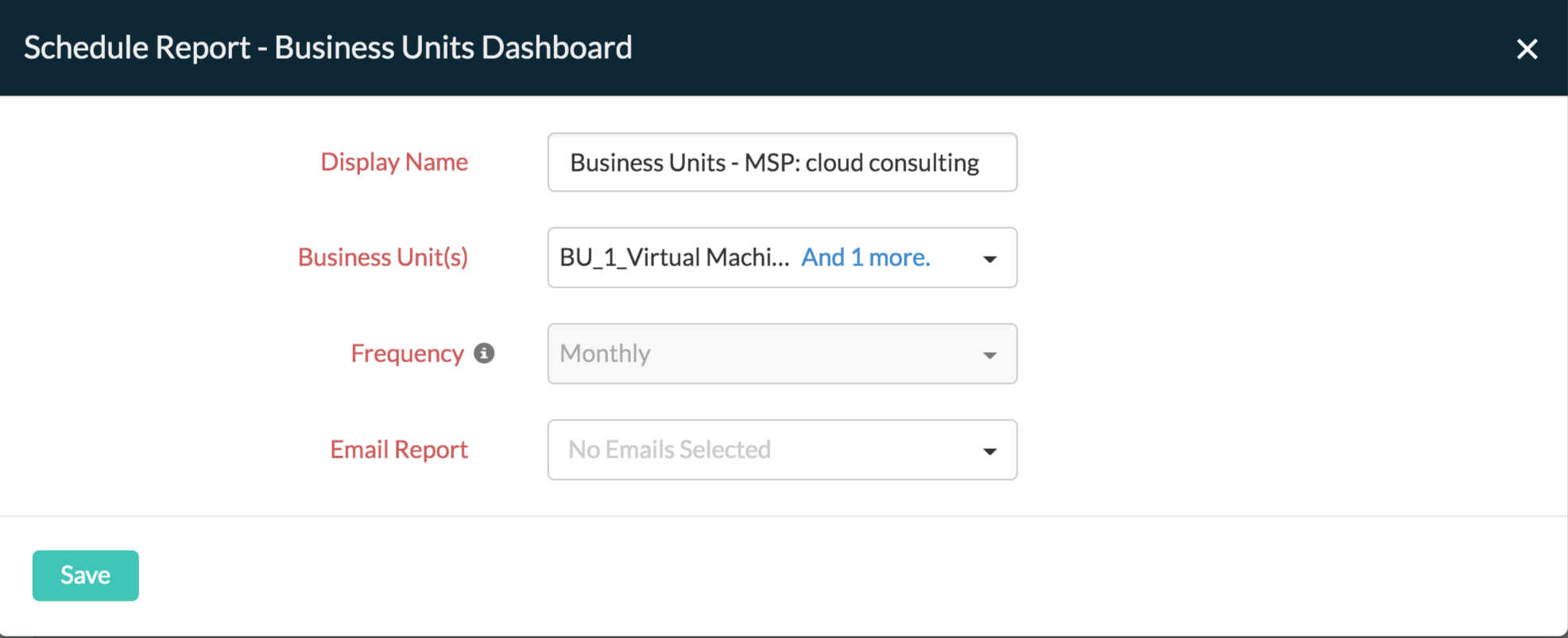 计费报表可让您了解 BU 当前的云成本趋势,而分片式报表有助于有效跟踪成本。使用成本报表,您可以为每个 BU 计划每月、每季度或每年的报表。
