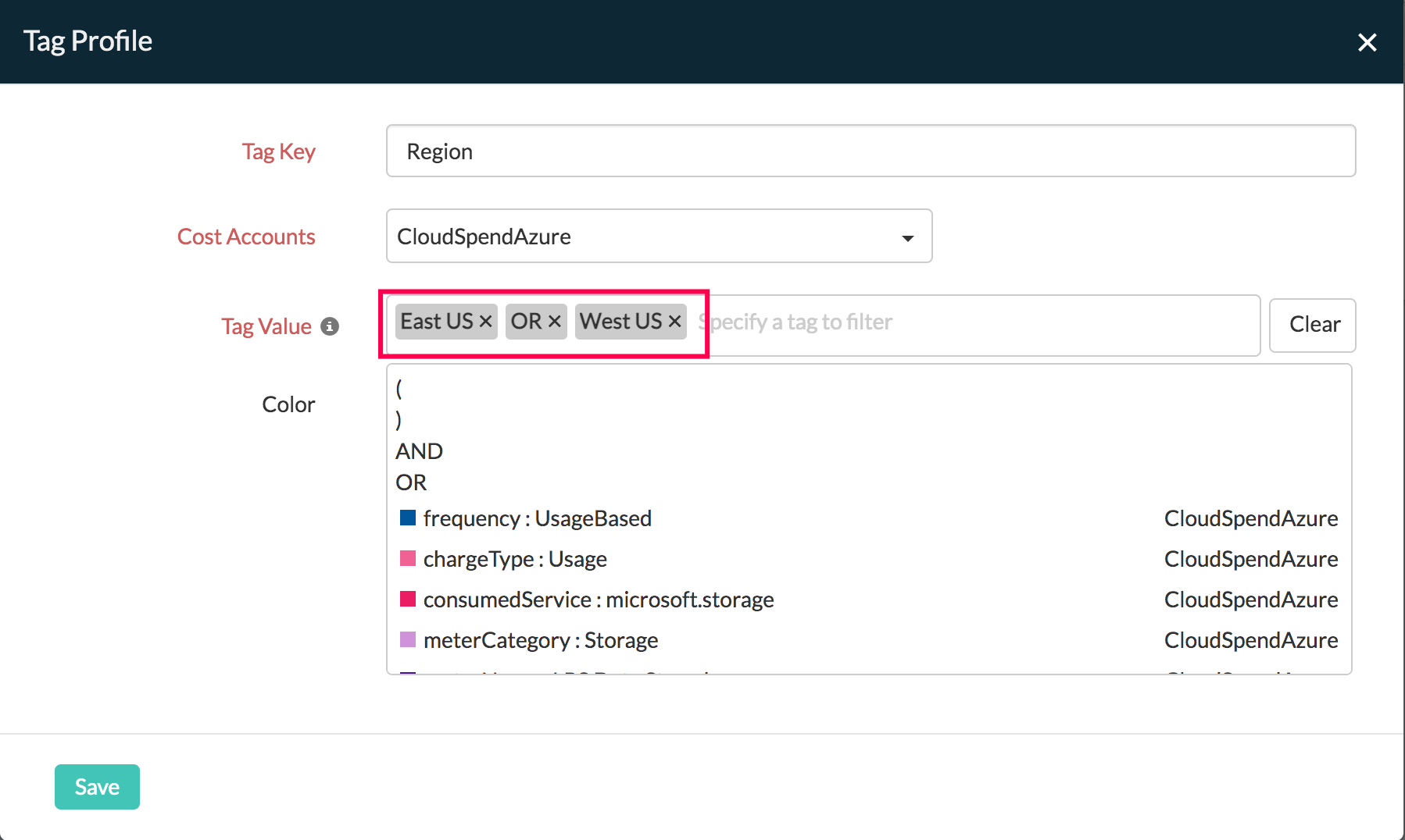 标签配置文件提供自定义标签,这些标签对用户定义的参数进行分组,例如资源位置、服务、资源、资源组、仪表类别和仪表子类别。它使您可以有效地管理云成本。既有用户定义的标签,也有 Azure 生成的标签。每个标签都有一个唯一值,您可以在创建标签配置文件时使用 AND/OR 条件组合多个标签。