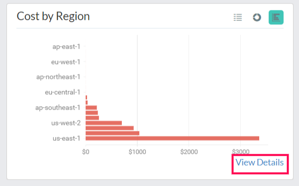 在 支出分析选项卡中,导航到 按地区划分的成本部分,然后单击查看详细信息。