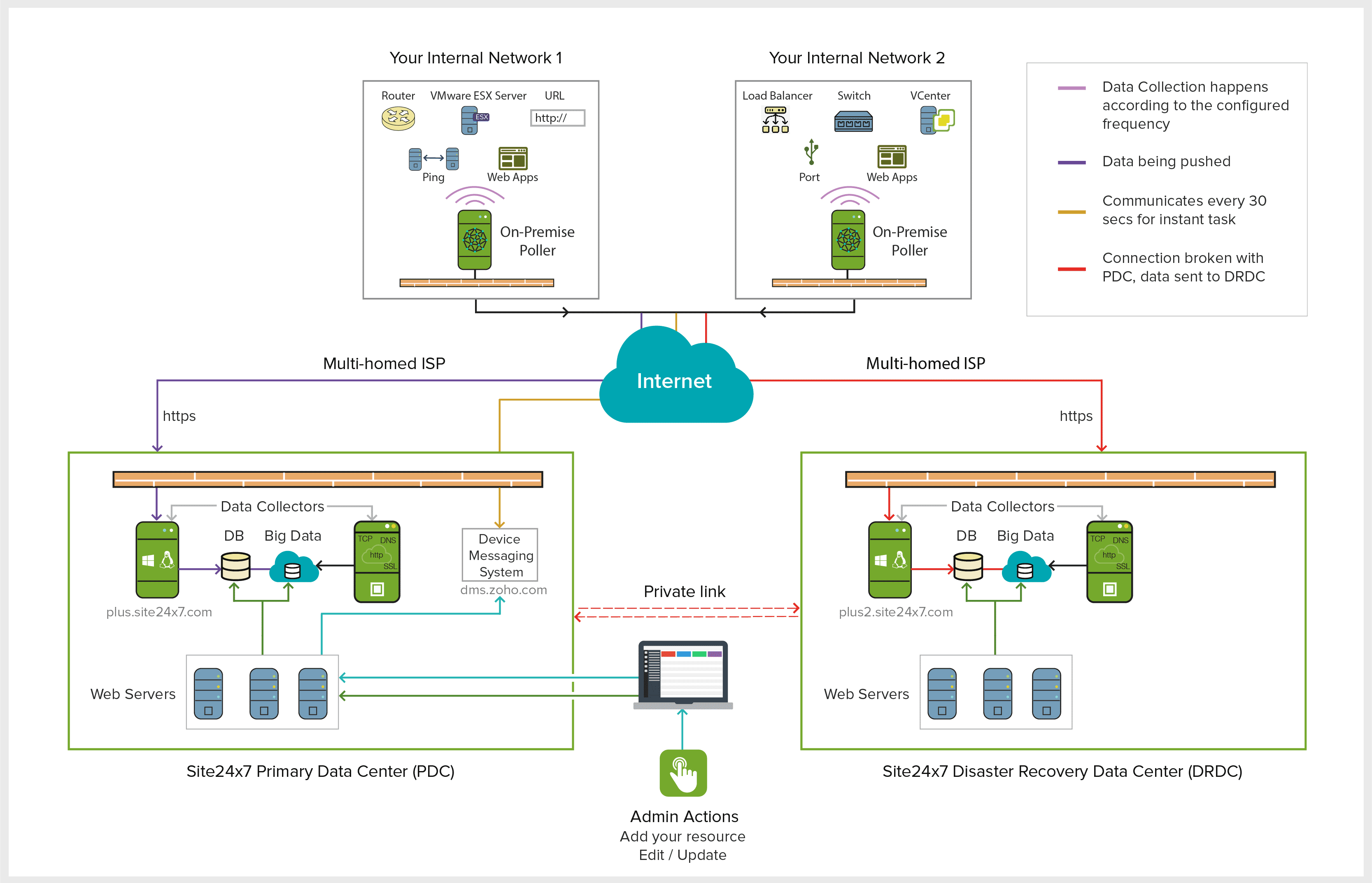 我们的轻量级代理本地部署轮询器可帮助监控防火墙或虚拟专用网络 (VPN) 后面的内部网络和资源。它可以监控数据中心组件和内部网应用程序,如博客、工资单应用程序、ERP 系统、网络设备和数据库服务器。您可以在分布式组织内的各个分支机构中安装本地部署轮询器,并监控每个分支机构的用户体验。