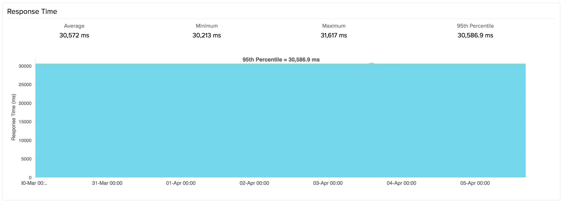 响应时间表示连接到 TCP/IP 端口所需的总时间。该图是通过绘制时间段与响应时间的关系来计算的。图表中的波峰和波谷可让您全面了解服务性能。平均值/第 95 个百分位值取决于为报告选择的时间范围。