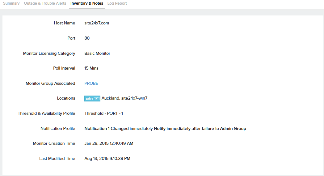 本节捕获基本监视器信息及其各种配置设置,包括轮询位置、轮询间隔、许可类型等。