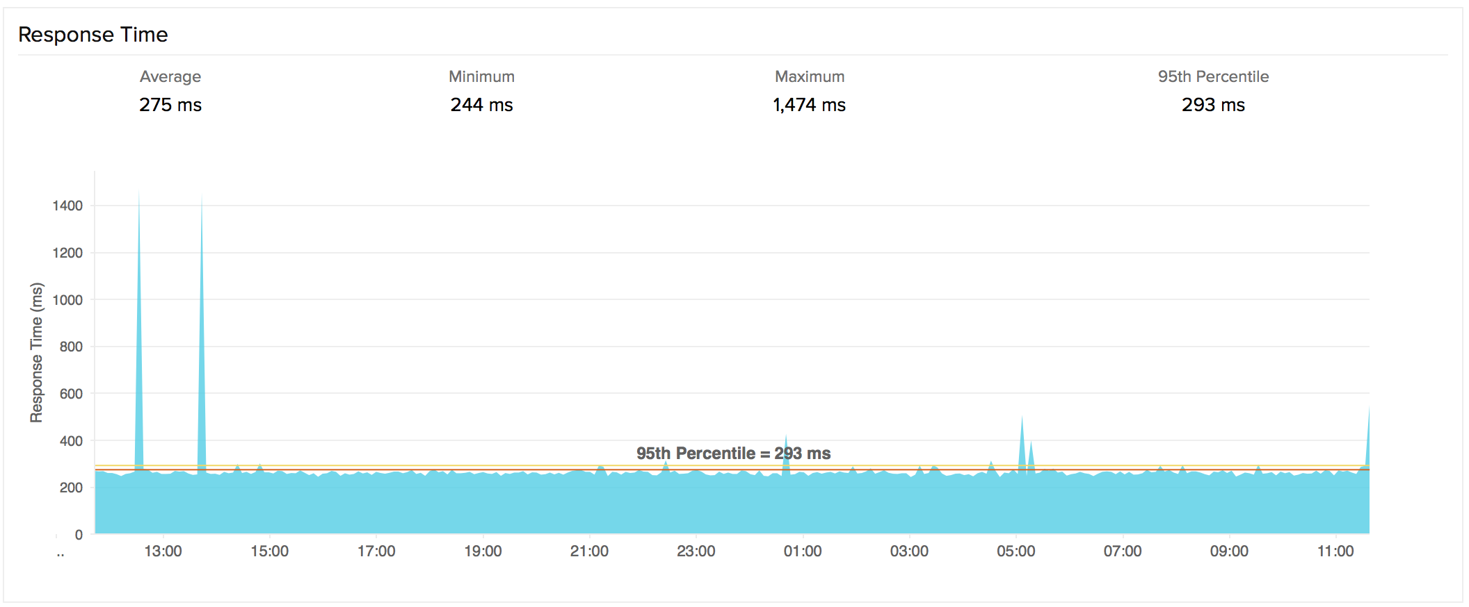 - 响应时间为您呈现识别 SMTP 服务器状态和检索任何与性能相关的数据所需的时间(以毫秒为单位)的概览。该数据以图形报表的形式呈现。