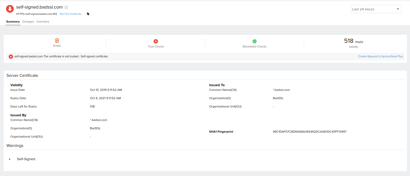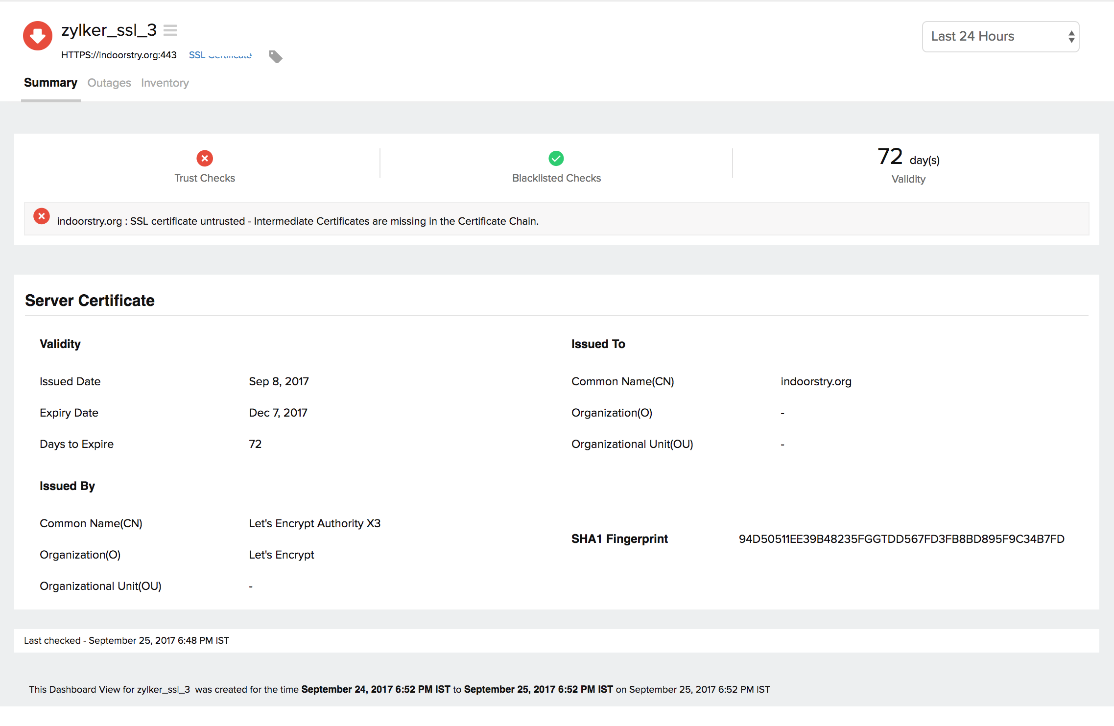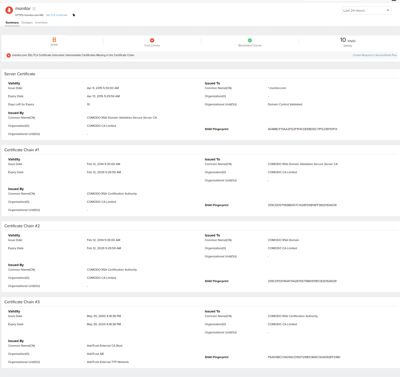 Site24x7 可以清楚地识别出证书不可信的确切原因。