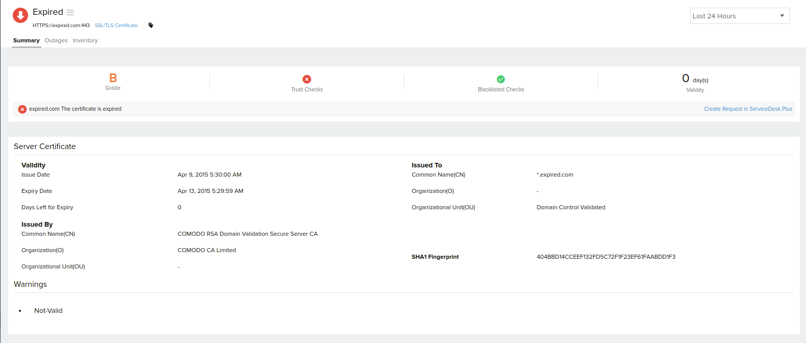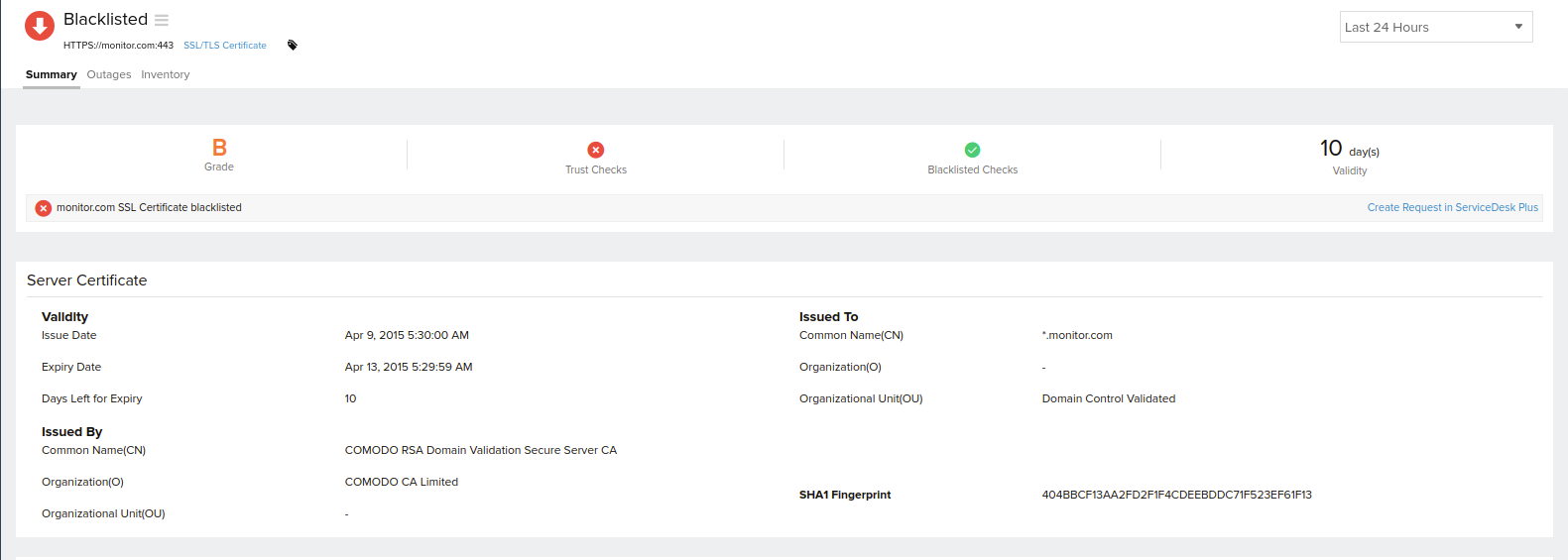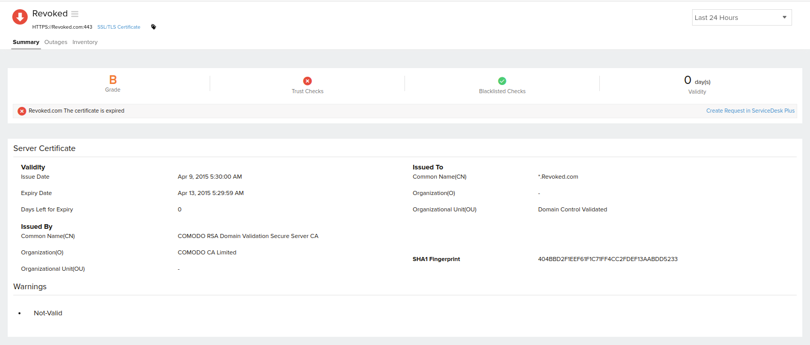 Site24x7 可以清楚地识别出证书不可信的确切原因。