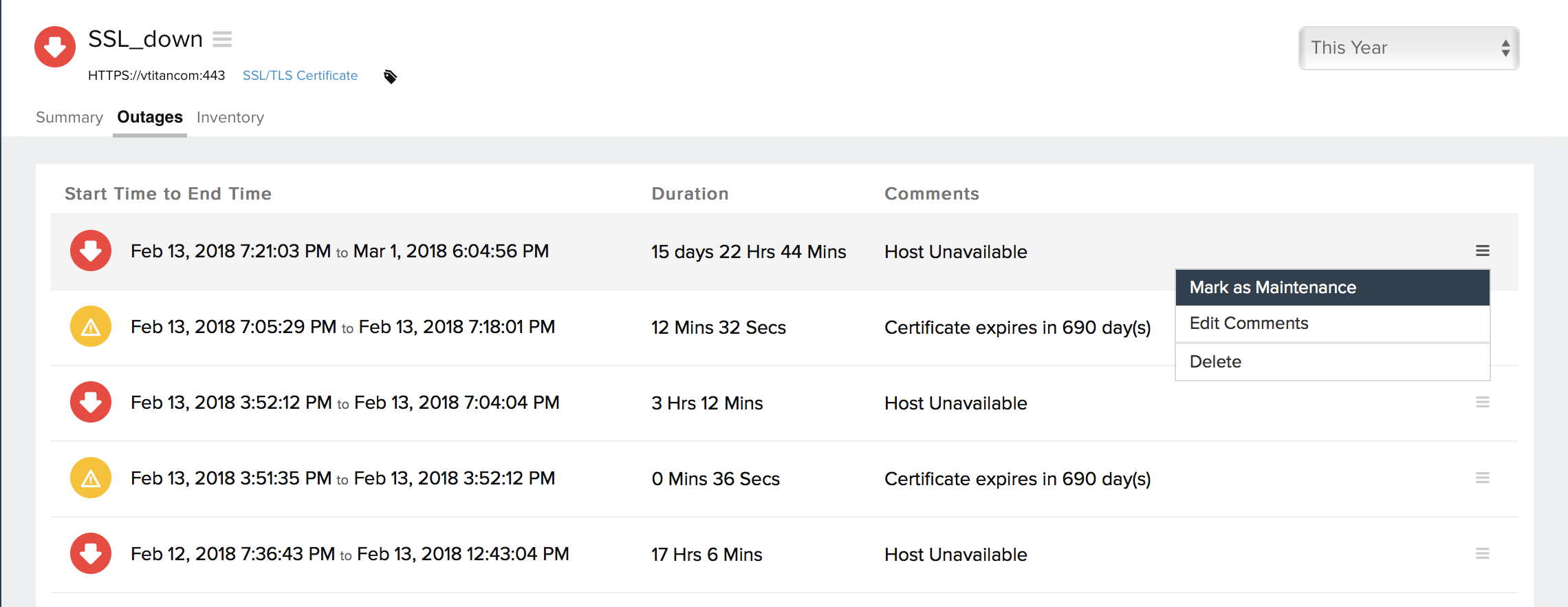 列出的监视器中断或维护的图标时,您将看到以下选项: