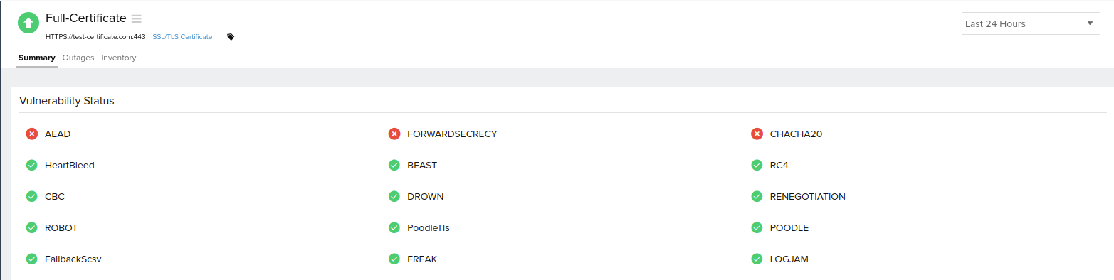 - 选择您选择的 SSL 证书监视器并转到漏洞状态部分。在那里您可以查看所有漏洞和您的相关状态。