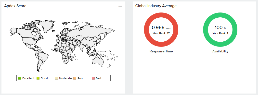 基准小窗件现在集成在客户端中,让您可以将您的网站性能与行业同行进行比较。使用我们的性能基准测试小窗件,您可以立即查看和比较您的平均响应时间和服务的可用性与您的行业同行相比。这可以在各个行业垂直领域进行查看。