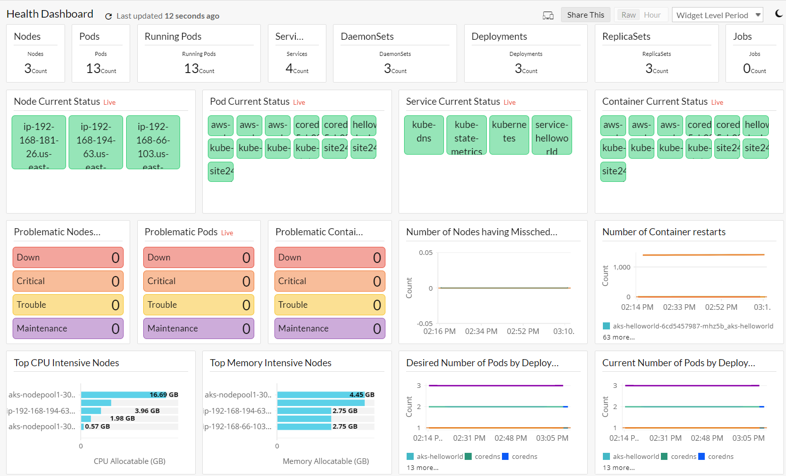 成功添加 Kubernetes 监视器后,您将被定向到健康状况仪表板。这代表了 Kubernetes 基础架构的所有关键组件的单一视图。