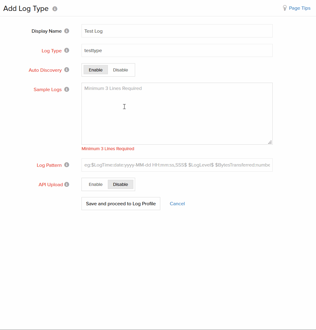 - 自动发现:切换 启用以在与此日志类型关联的任何新服务器中自动查找此日志格式并开始上传它们。