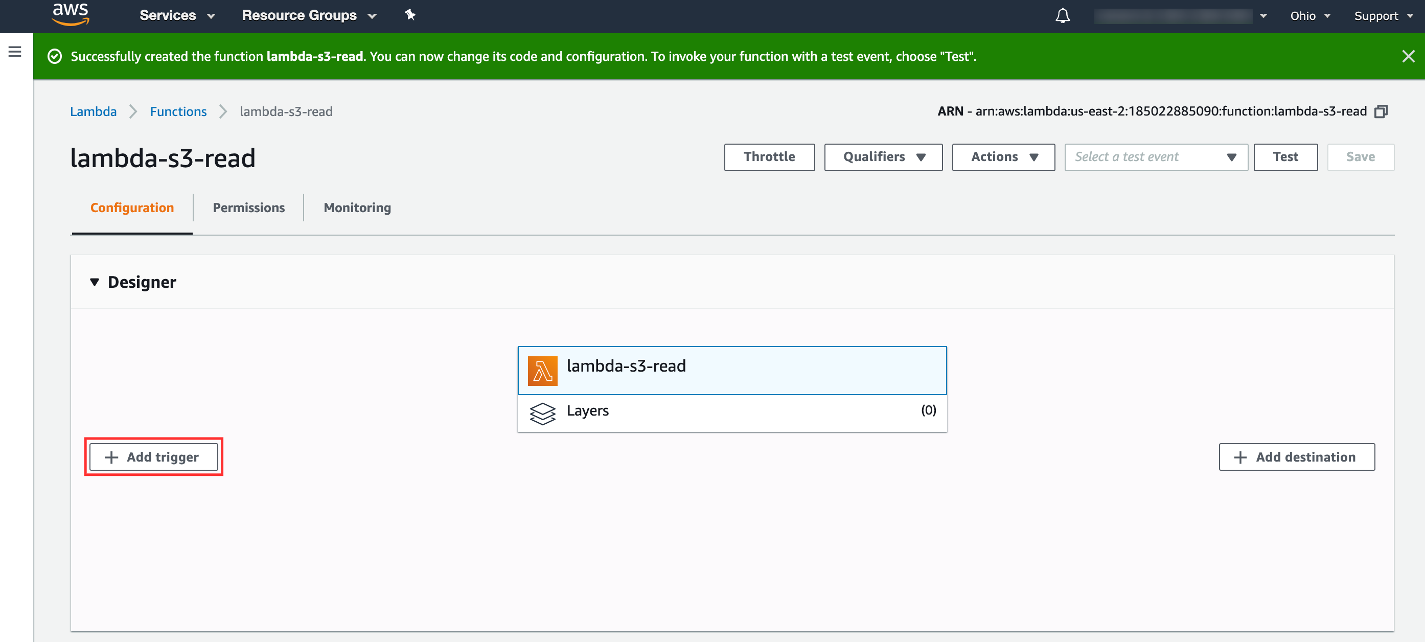在打开的窗口中,单击AWS Lambda-s3-Read,如下所示: